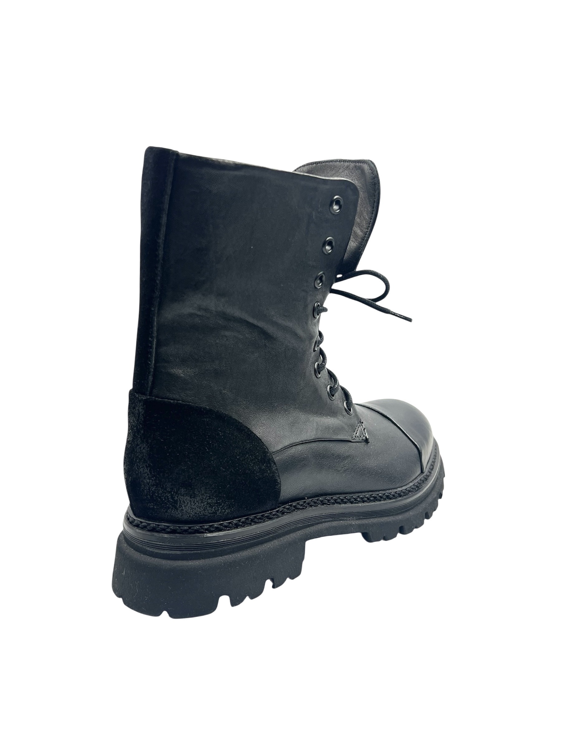 Ladies Rain Boots Full Rubber Sole Upper Leather and Heel Tip Black Suede