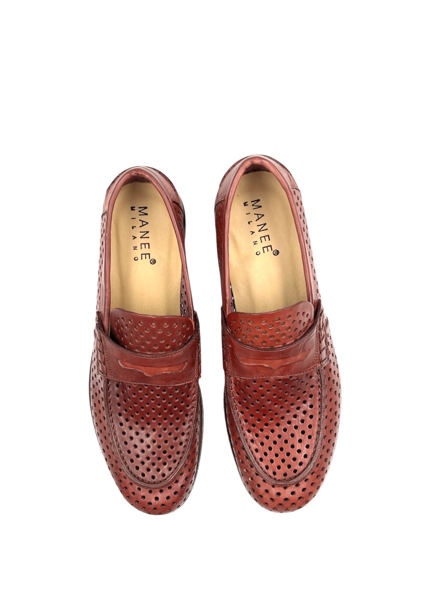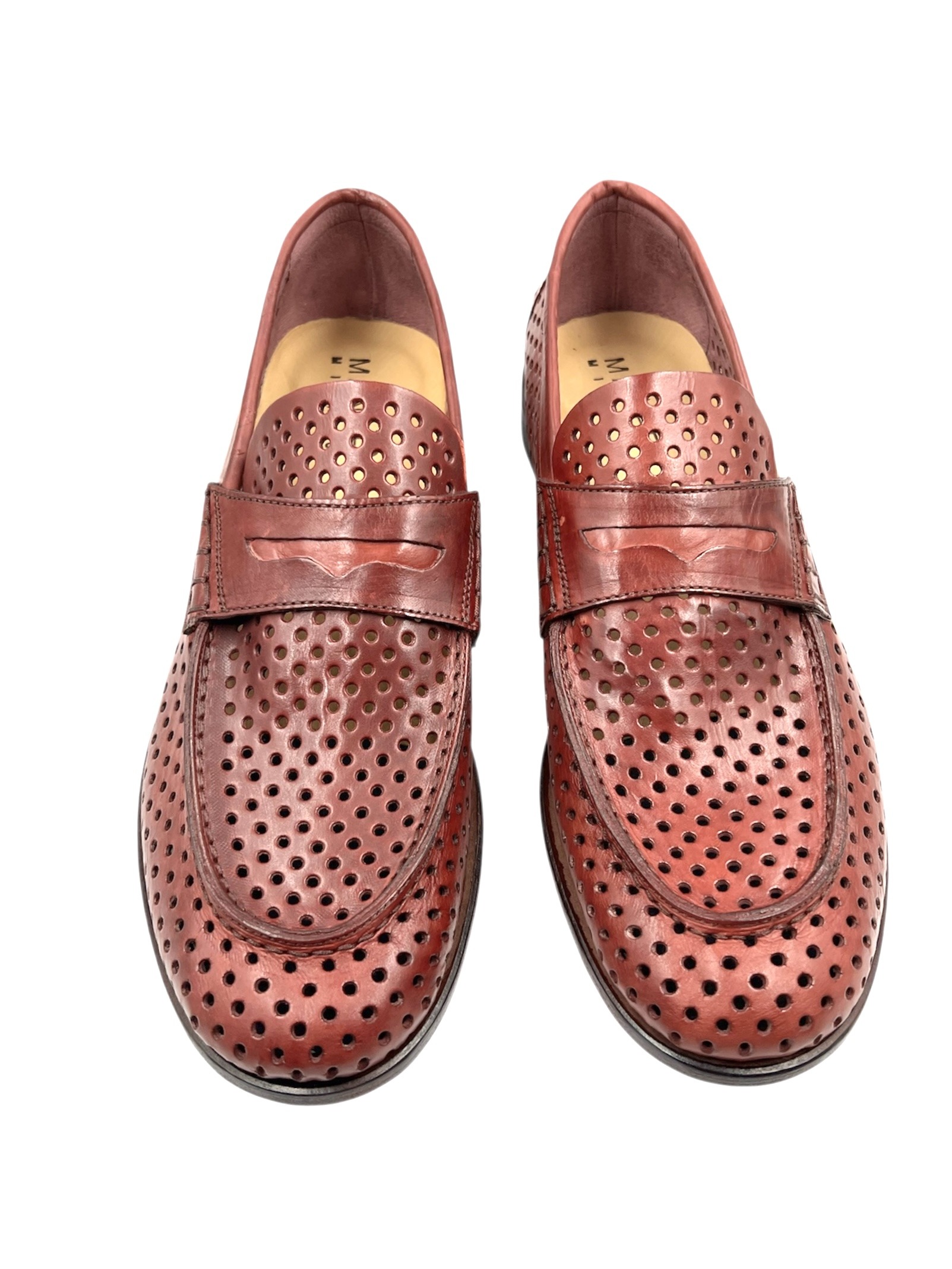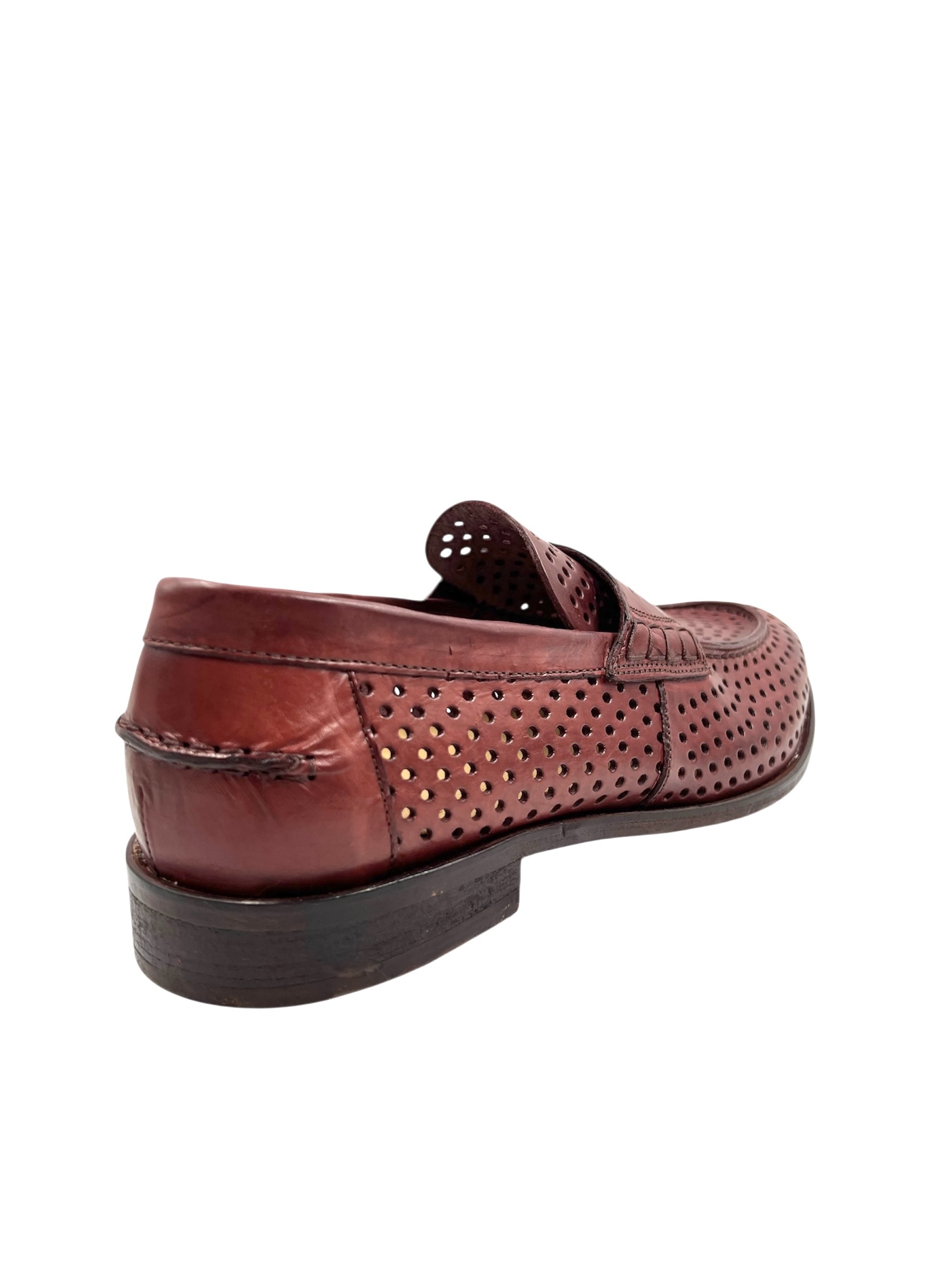 Men’s Handmade Burnt Red Perforated Leather Moccasin with Non Slip Outsole